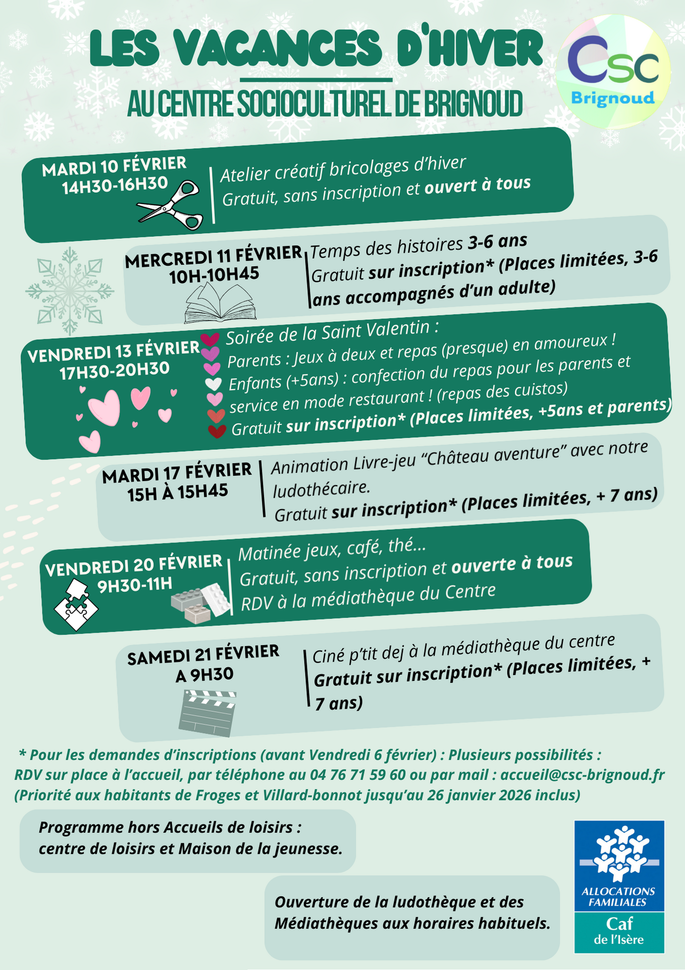 CSC de Brignoud | Animations des vacances de février 2026